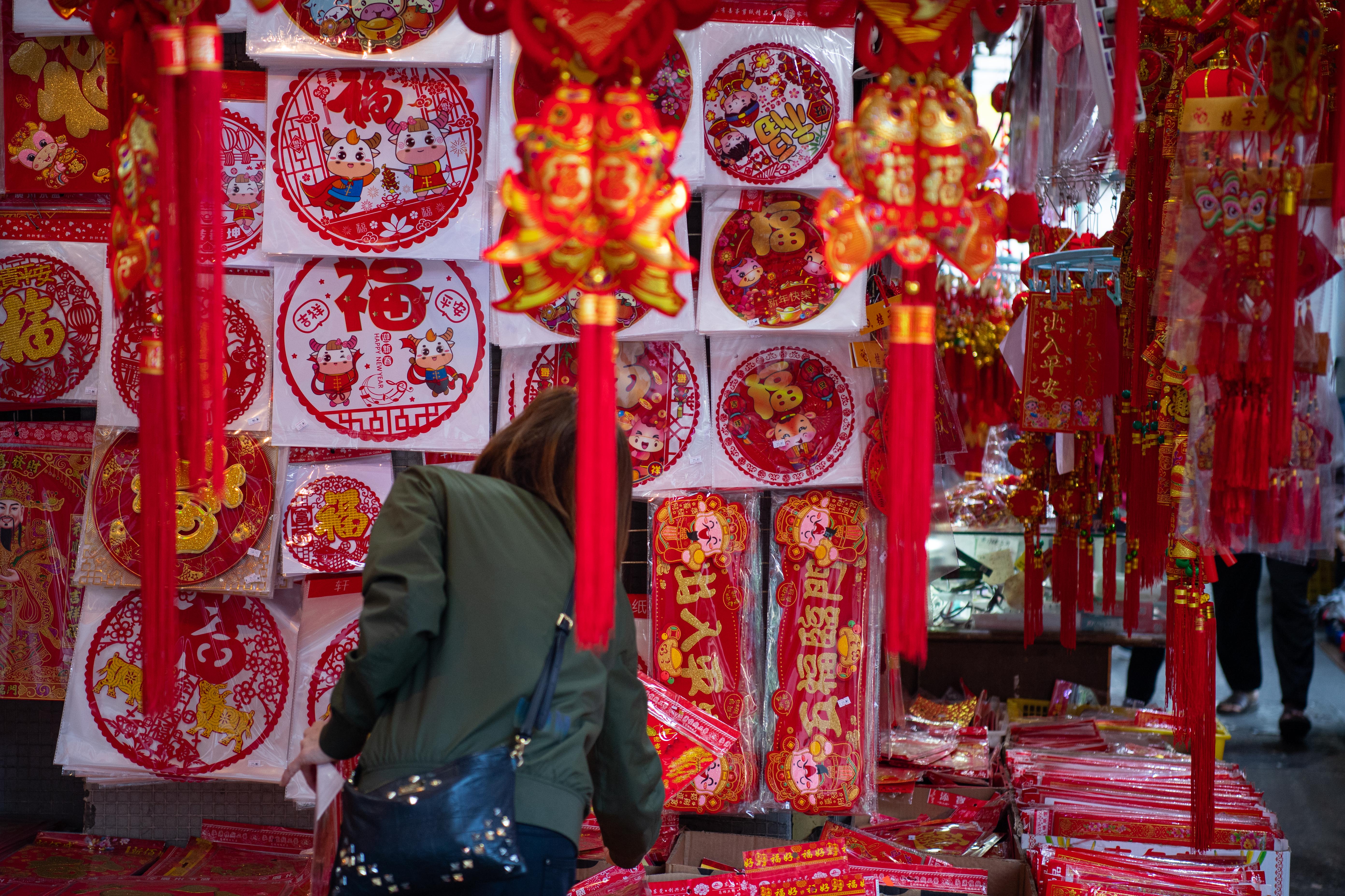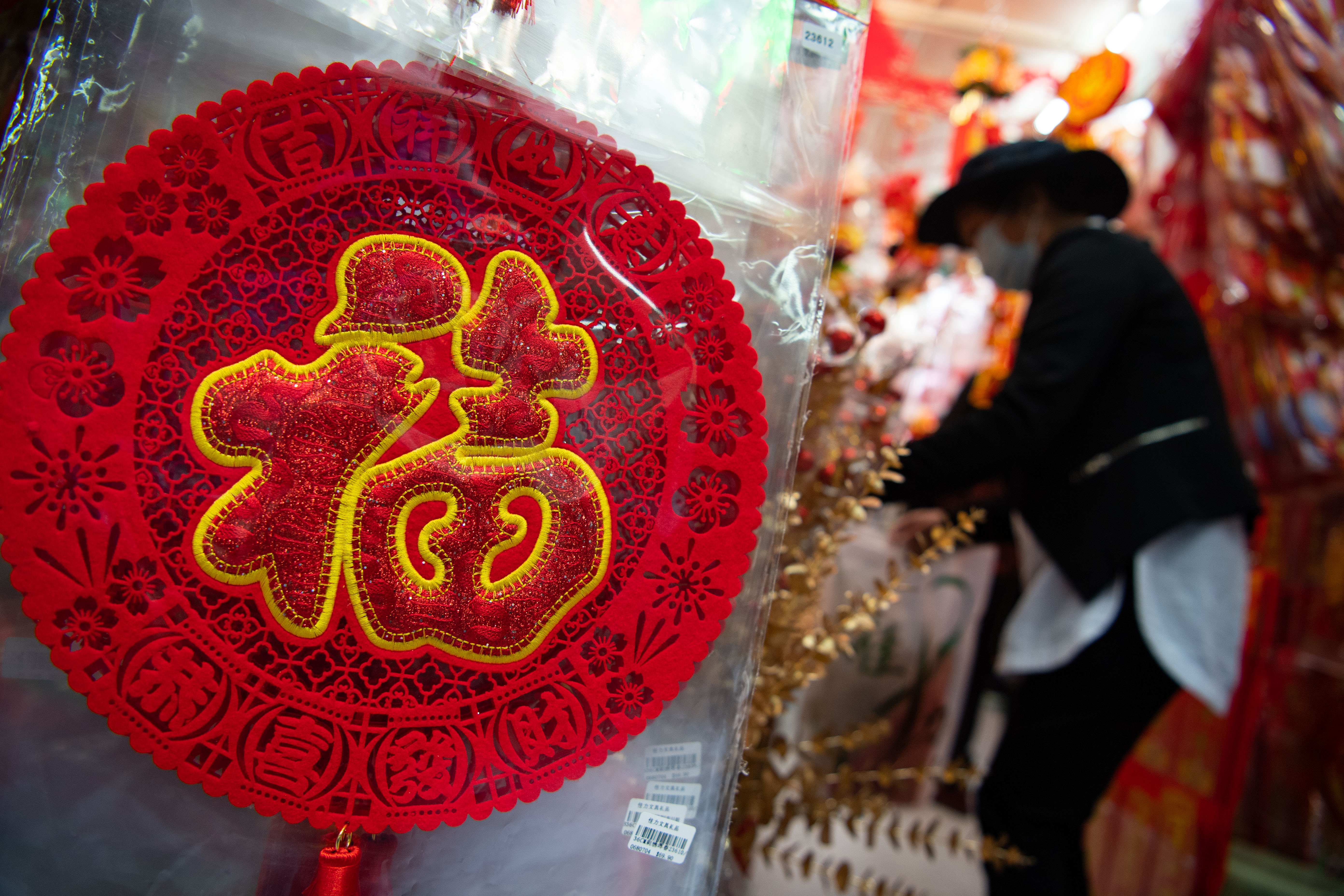 2月3日,澳门市民在选购新春挂饰。新华社记者 张金加 摄