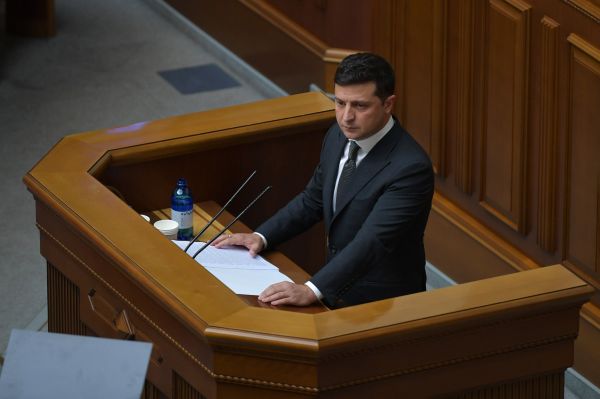 这是2020年10月20日,乌克兰总统泽连斯基在乌最高拉达(议会)发表年度国情咨文的资料照片。 新华社发(乌总统办公室供图)
