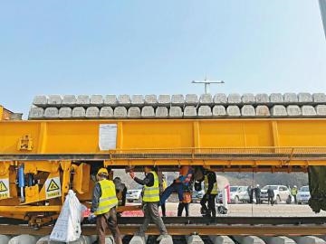 “川南城际铁路内自泸线是省内第一条时速250公里的有砟轨道高速铁路。”中铁八局川南城际铁路铺轨项目部副经理吴章军说,该线采用的是水洗特级道砟。为此,项目部建设了特级道砟水洗基地,采用末端水洗+直接上道的施工工艺,确保道砟级配、清洁度等各项指标满足设计要求,提高道床道砟的使用性能,减少后期维护工作量。