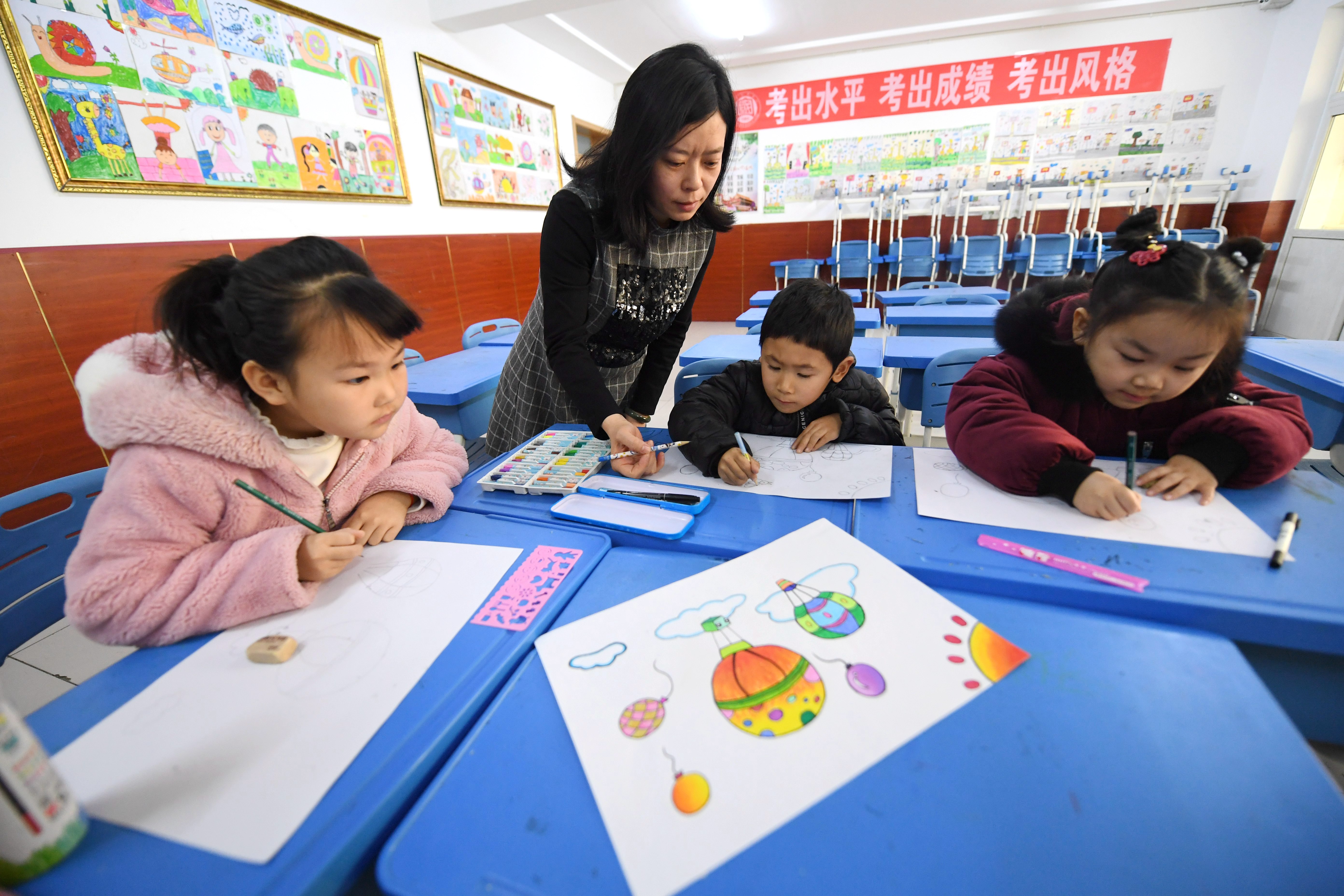 2020年1月16日,在河北省大厂回族自治县青少年校外活动中心,孩子们在公益培训班上学习绘画。新华社记者王晓 摄