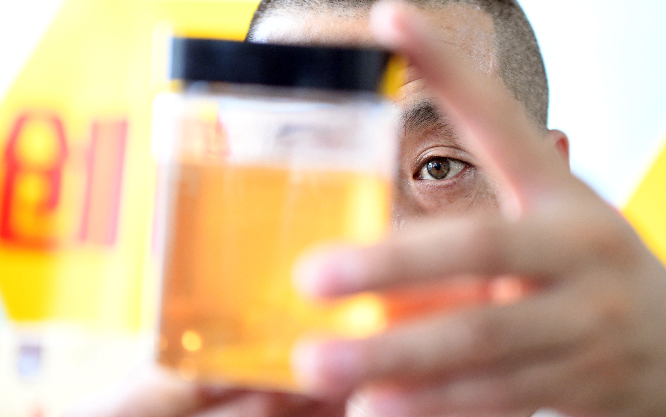 2020年9月2日,在天津市爱益乐峰科技有限公司,工人观察蜂蜜成色。新华社记者马平 摄