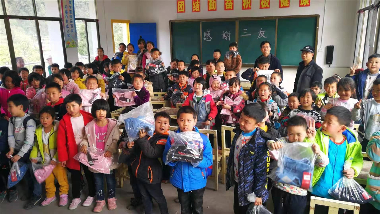仓关峪村的孩子们受到捐赠物品。(图片由受访者提供)