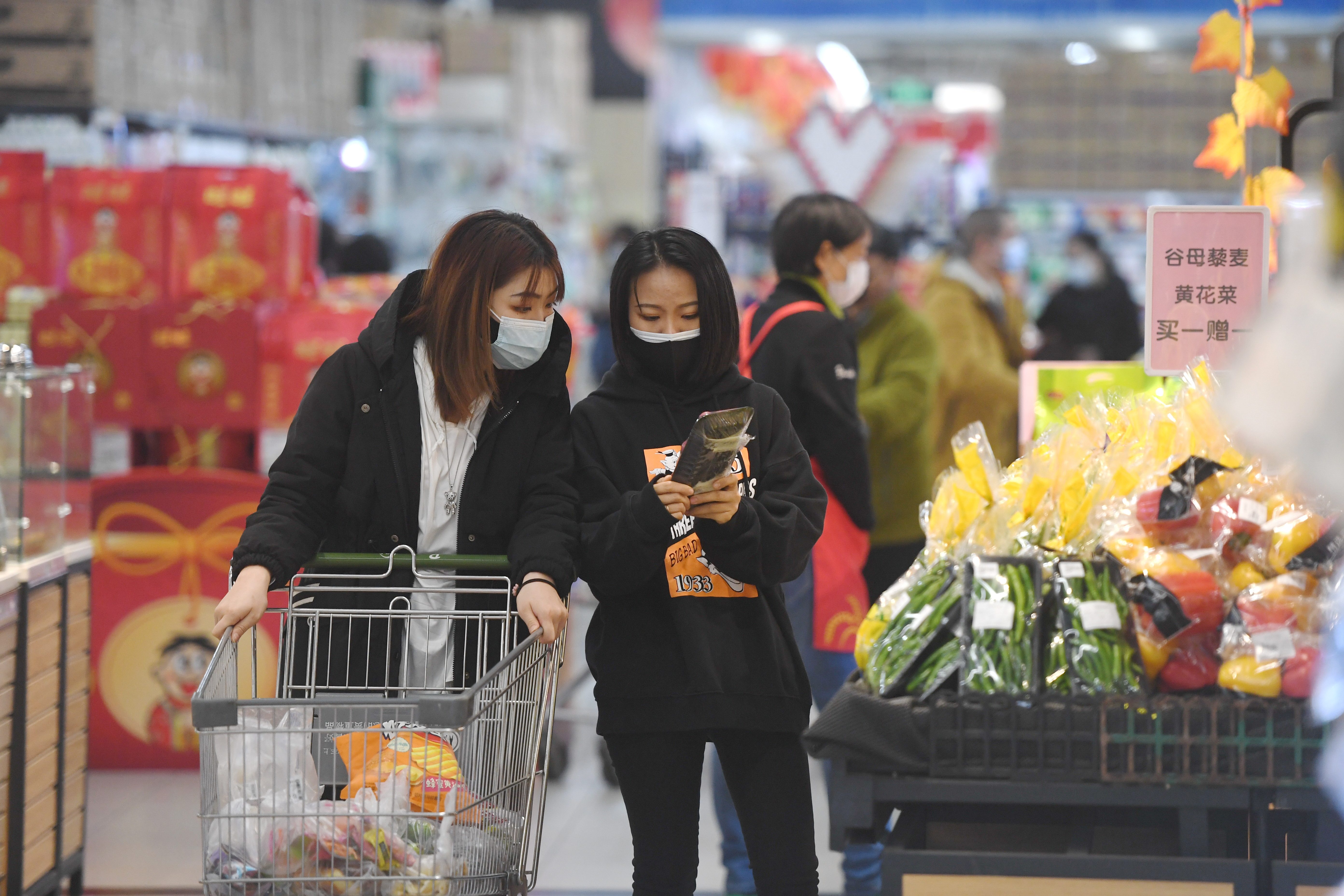 2月1日,市民在石家庄市裕华区一超市选购商品。(新华社记者朱旭东摄)