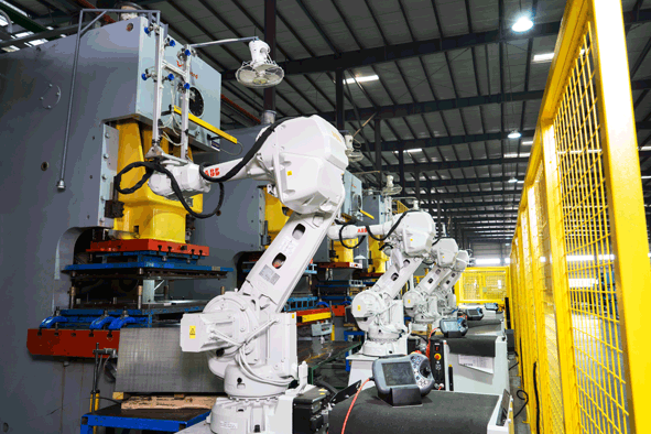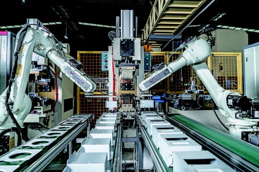 ↑万和“智慧工厂”内的智能机器人生产线。(受访者供图)