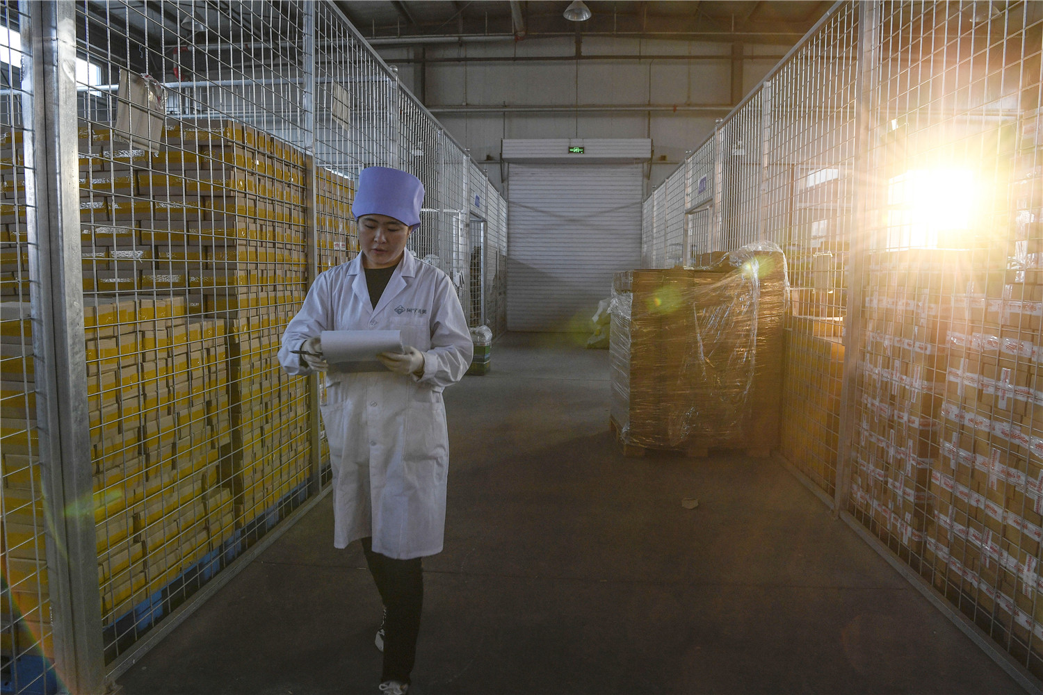 车间仓库管理员马云素在仓库登记货物。新华社记者冯开华摄