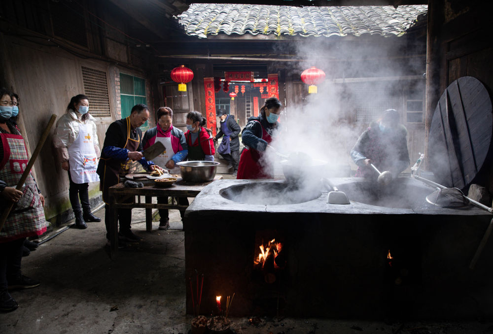 ↑2月4日,李家大院的居民在忙碌地准备丰盛的“小年”团年饭。