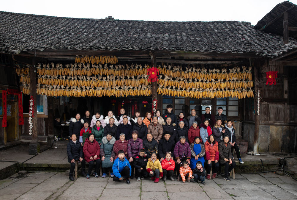 ↑ 2月4日,吃完团年饭后,李家大院在家的居民照了全家福。