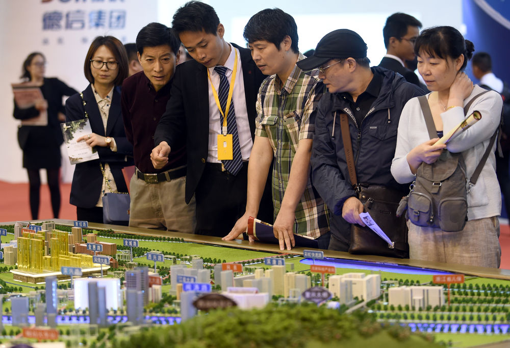 购房者在参观一个楼盘的沙盘。新华社记者 王定昶 摄