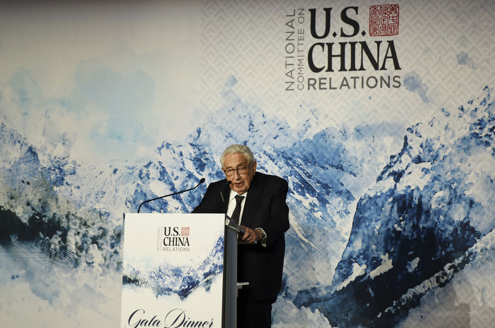 图为2018年11月15日,在美国纽约,美国前国务卿基辛格在美中关系全国委员会年度晚宴上致辞。(新华社记者韩芳摄)