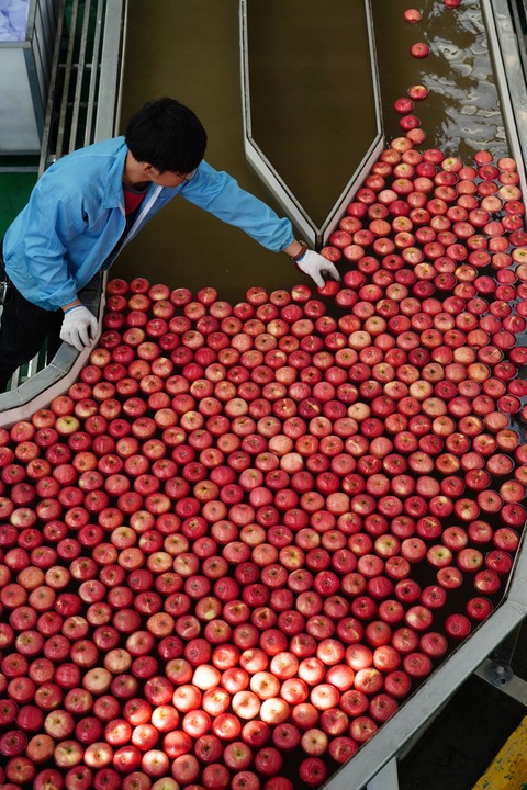 在洛川县“王掌柜农业”公司,全自动分拣线如照CT一般,可以快速为每个苹果拍摄24张照片,依据外观、糖度、硬度等指标进行精准分拣,客户可实现个性化定制。这样的智能选果线,延安已建成103条,果农从过去的“称斤卖”转为“论个卖”。