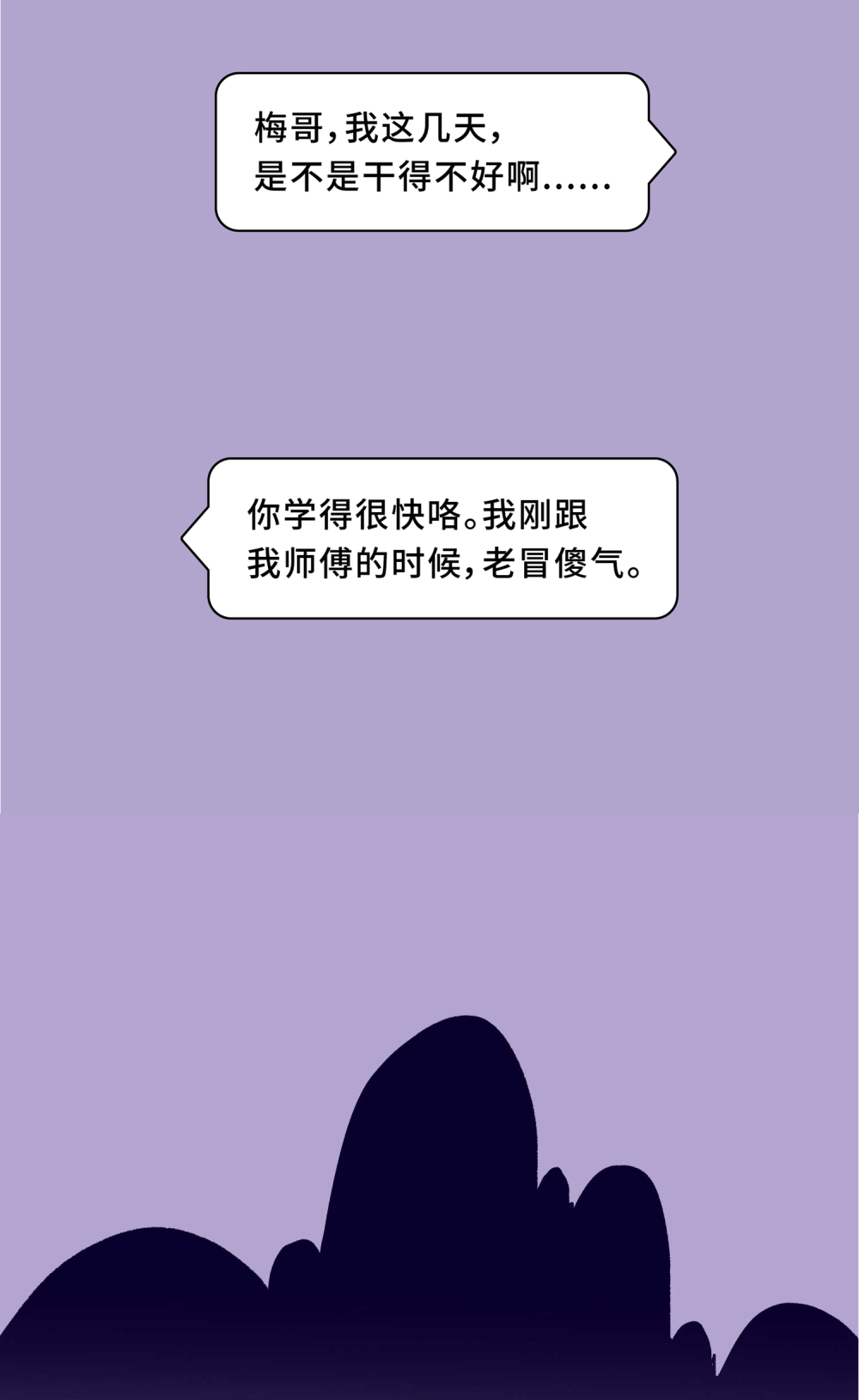 小林已经能独当一面,工作熟稔。梅哥已经回到家乡,听着妈妈的唠叨。