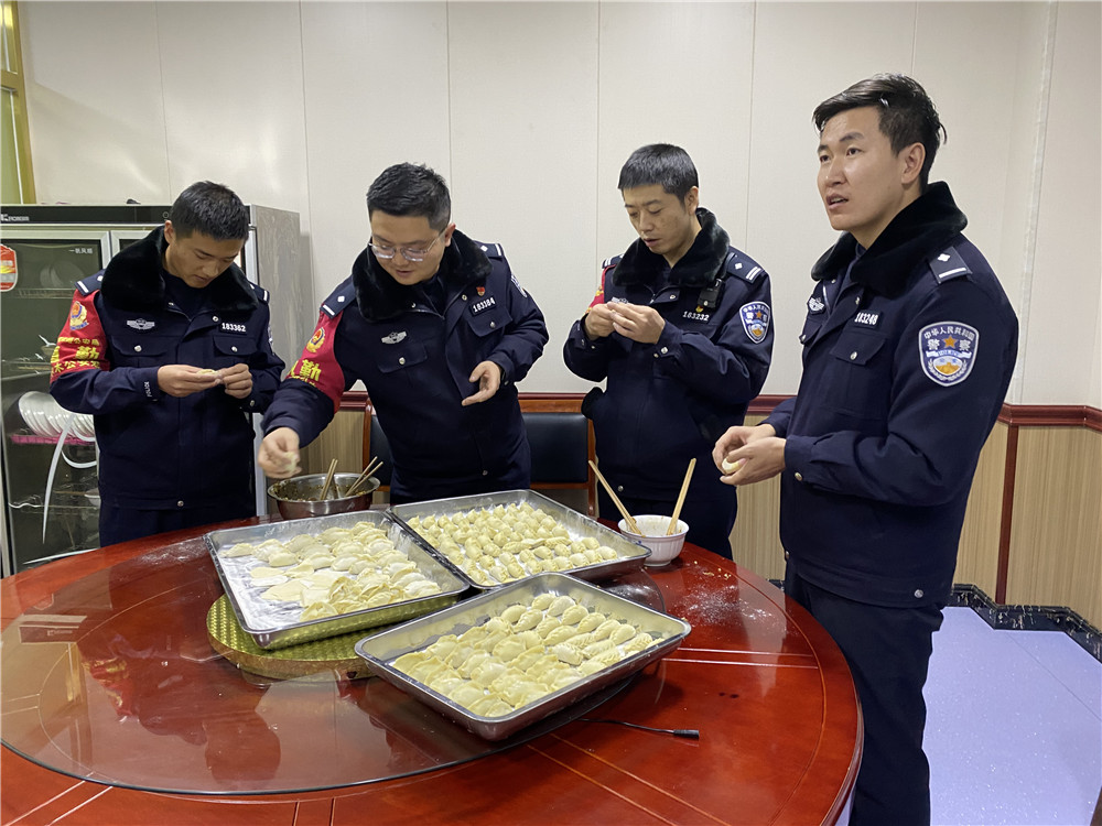 “我们派出所下辖两个警务区,日常的主要工作就是沿着辖区铁路巡线,并负责铁路周边的安保。今天恰逢农历小年,大家忙完了一天的工作,一起包饺子、煮饺子、吃饺子,也让我们的业余生活多了乐趣。”薛兴胜说。