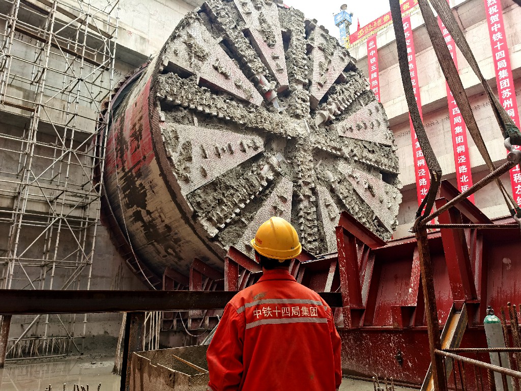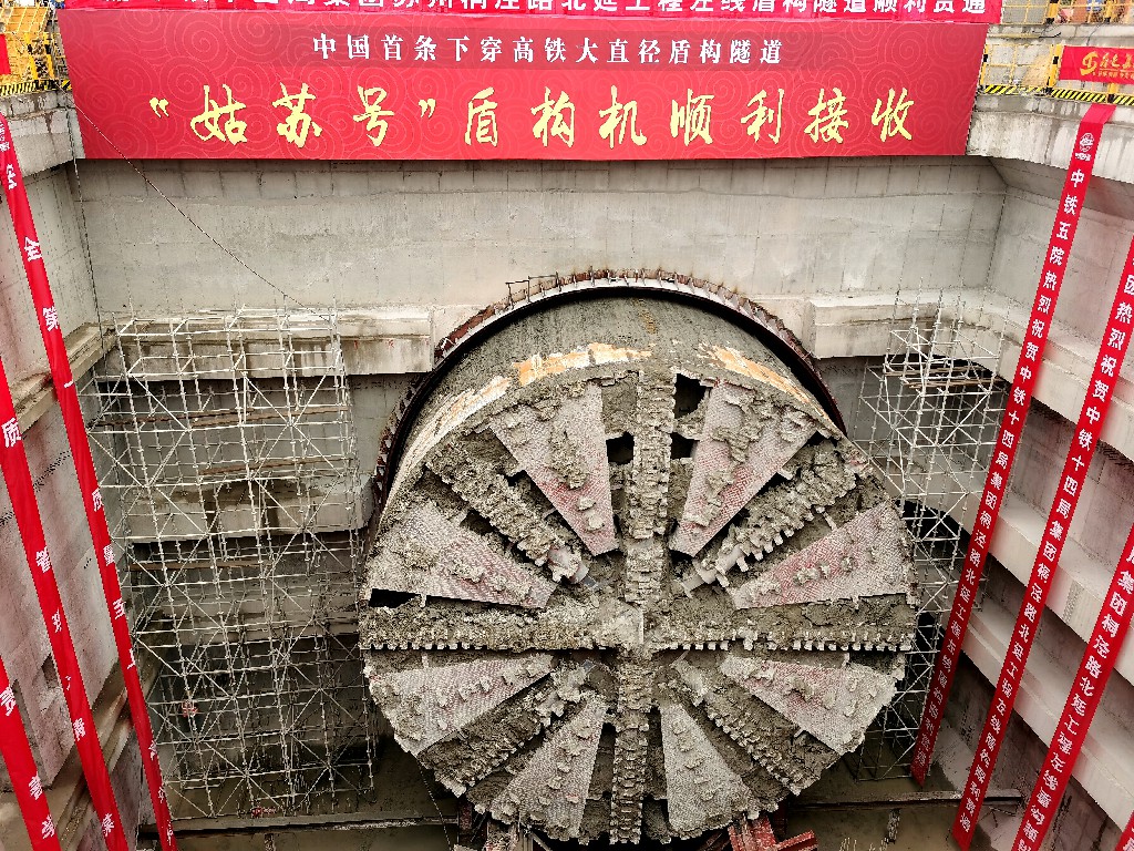 2月5日,苏州市姑苏区桐泾北路与北环高架路口附近的接收井内,相当于四层楼高的“姑苏号”盾构机的巨大刀盘破土出洞,意味着桐泾路北延工程左线隧道顺利贯通。据中铁十四局项目负责人介绍,在运营高铁下穿越一条直径相当于4层楼高的隧道,国内外都没有先例。