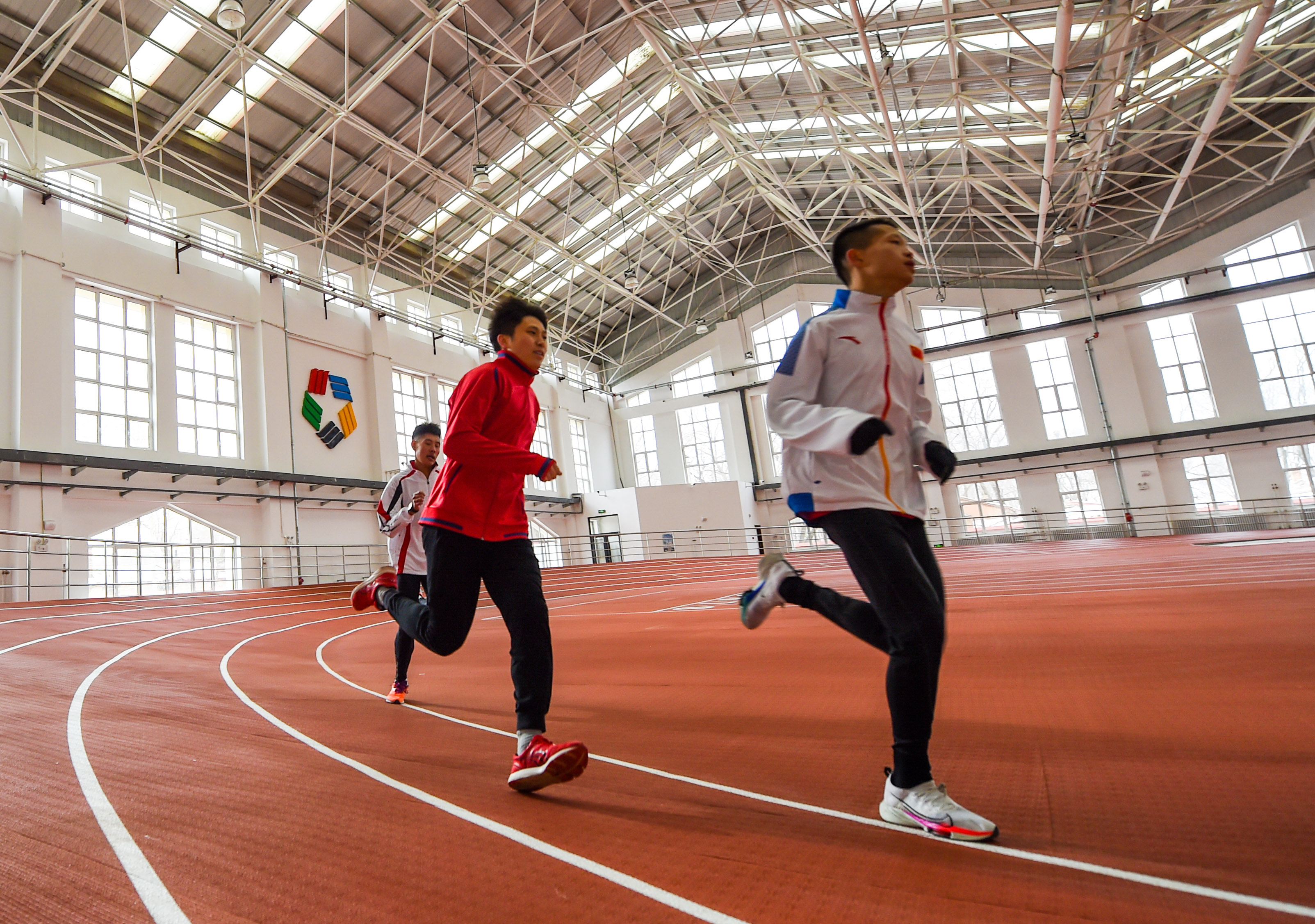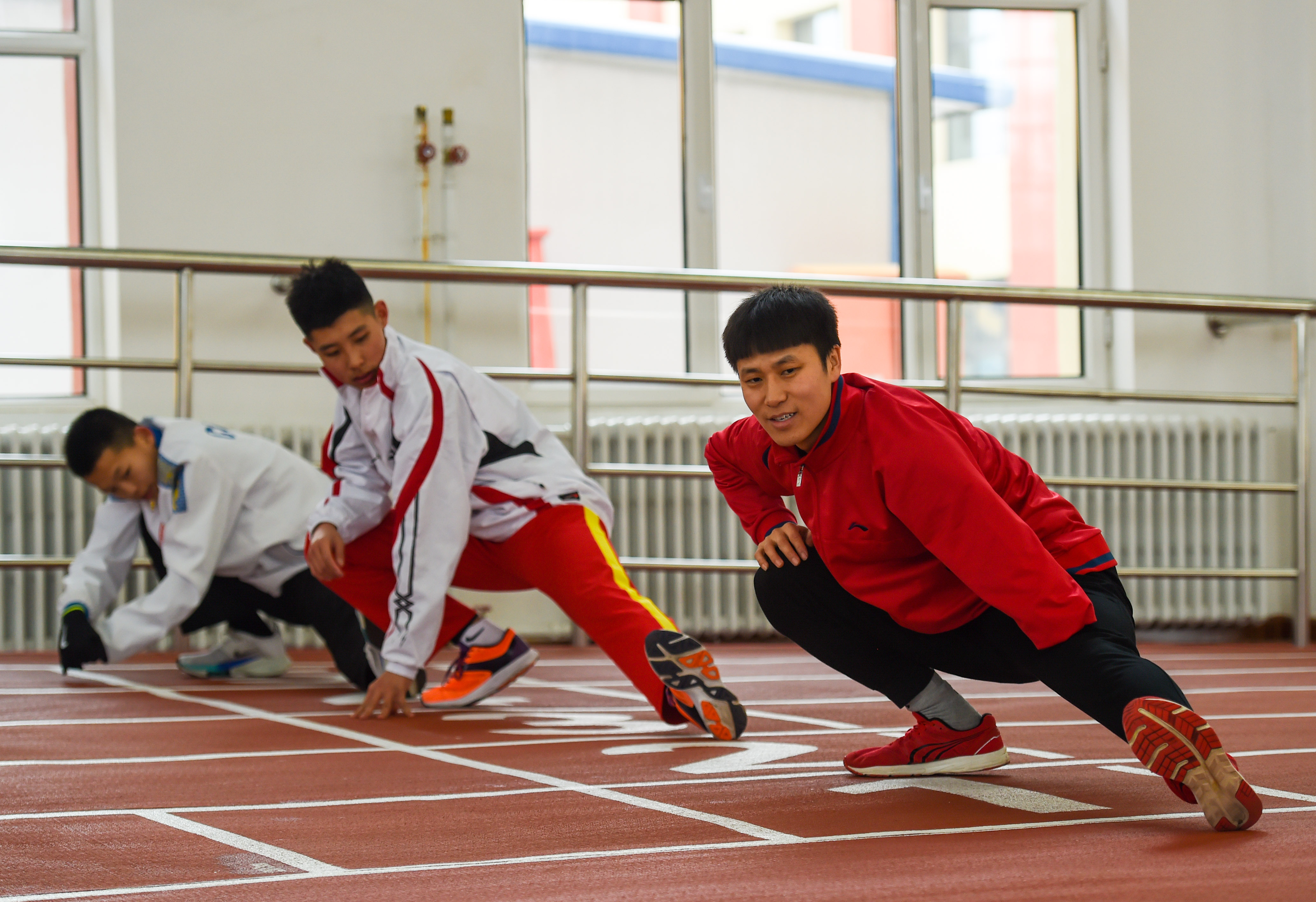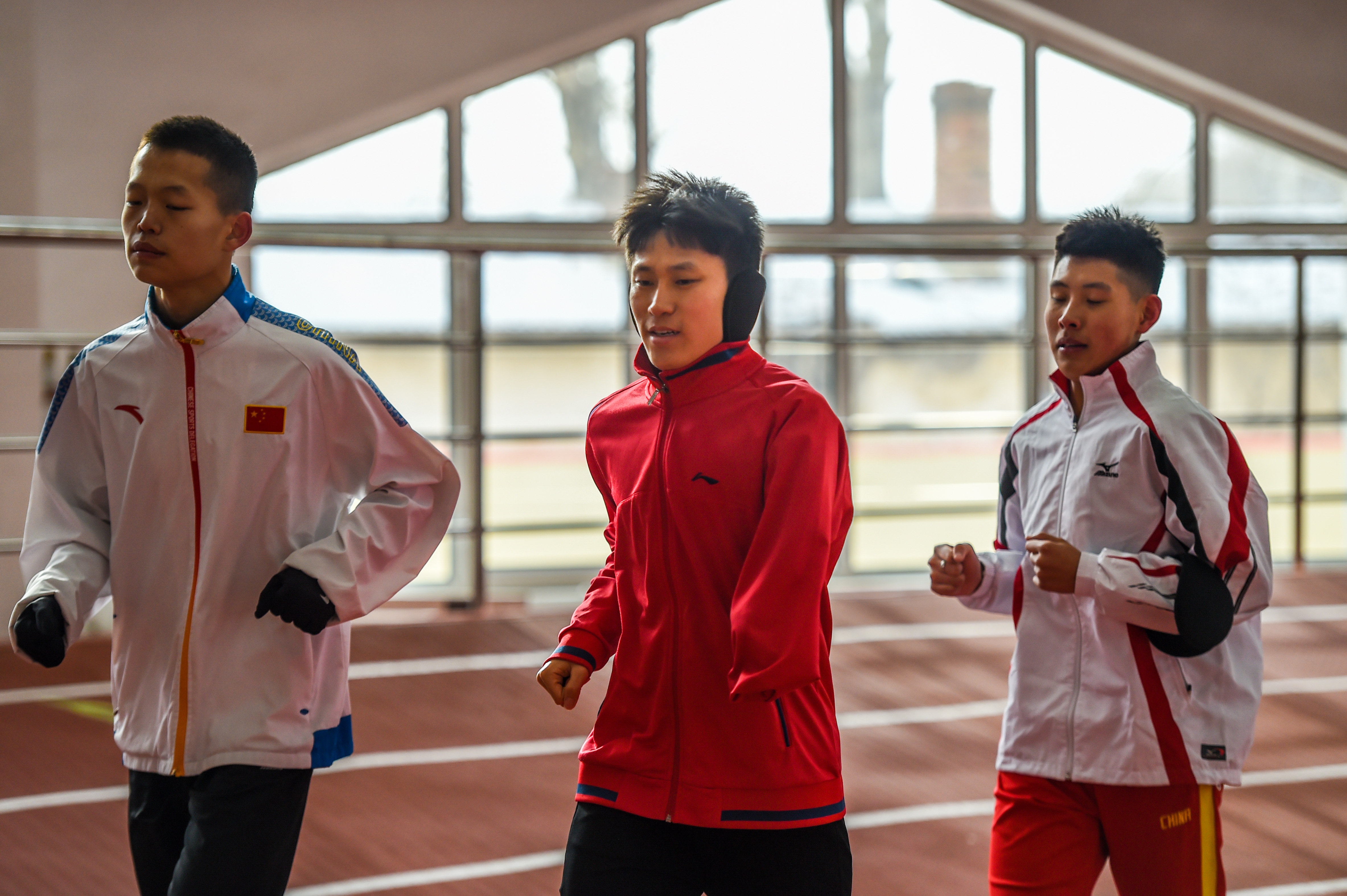1月12日,赵强(中)与队友进行400米跑日常训练。新华社记者彭源摄