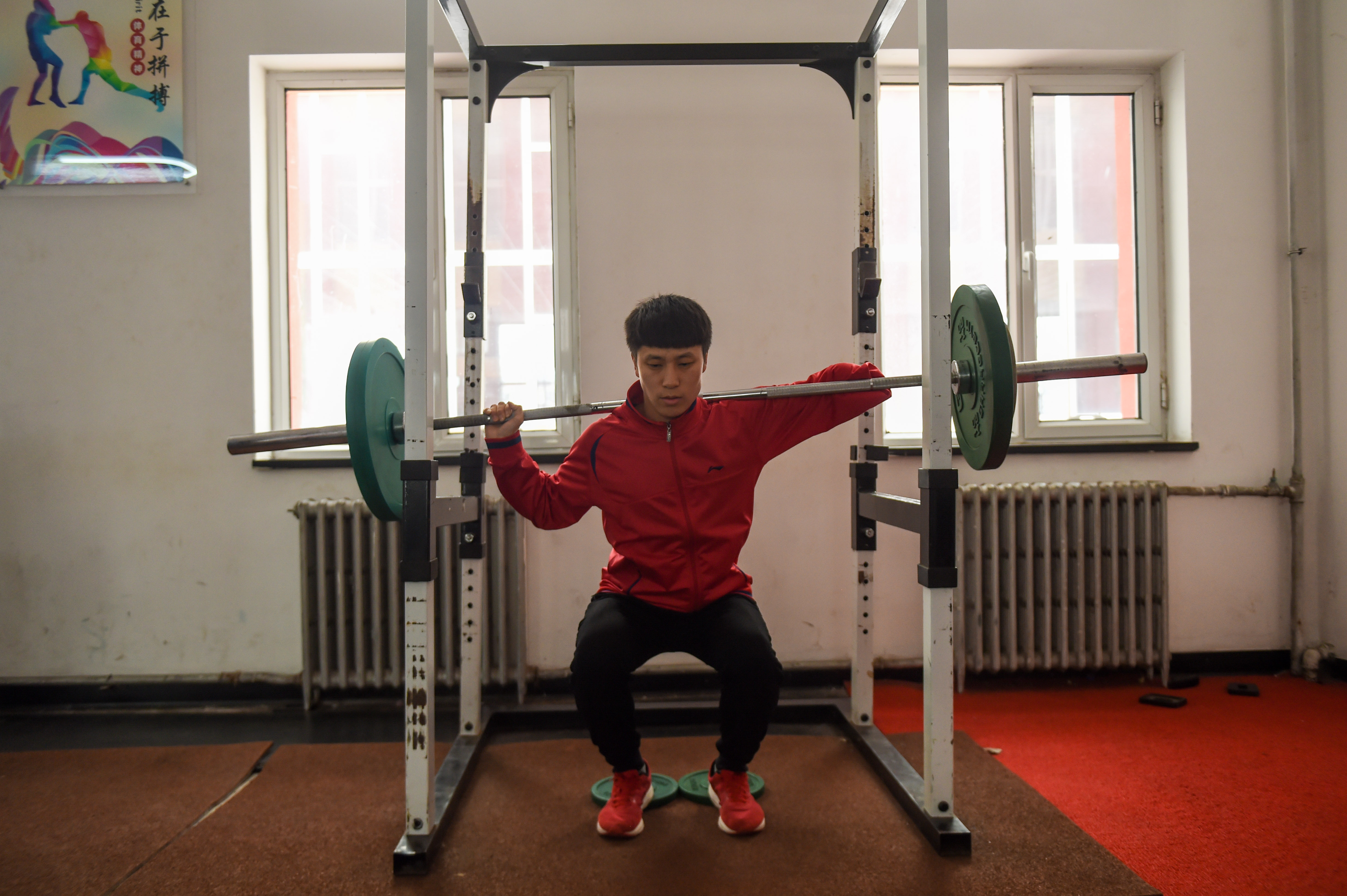 1月12日,赵强在健身馆内举杠铃。新华社记者彭源摄