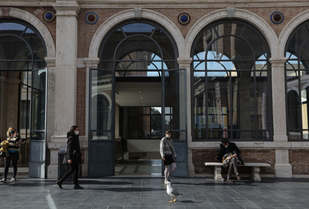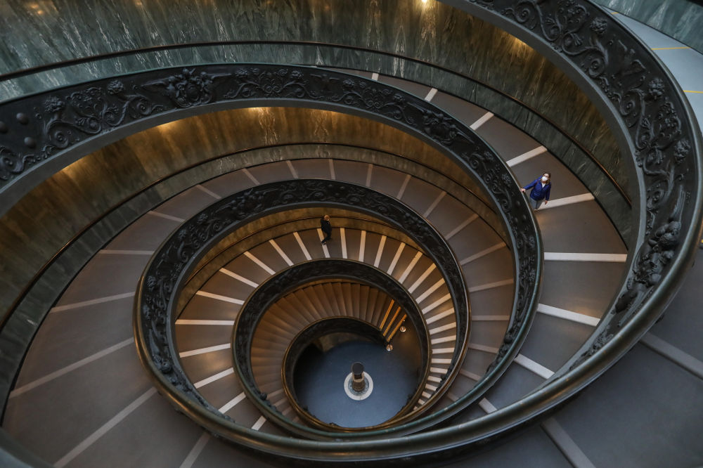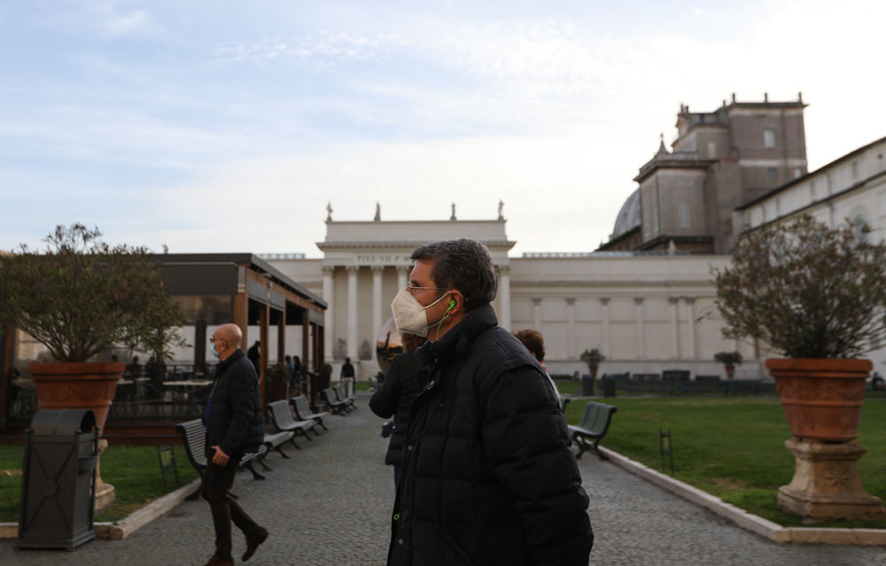 2月5日,人们戴着口罩走向梵蒂冈博物馆的出口。