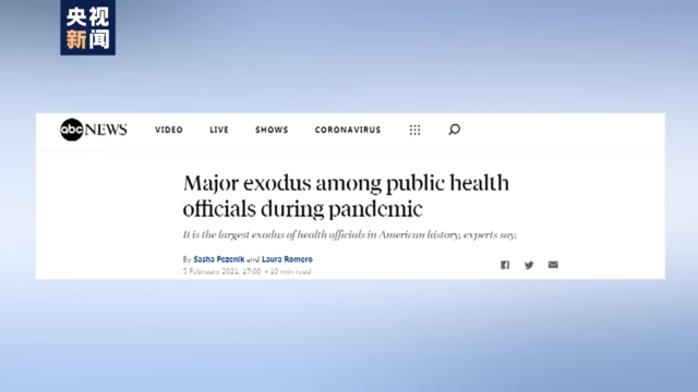 另据美国广播公司5日报道,凯泽健康新闻社和美联社共同发起的一项调查数据显示,自去年4月1日以来,有180名来自美国各州和地方的公共卫生机构领导人,以及至少38个州的卫生机构高级官员已辞职、退休或被解雇。美国广播公司对此评论称,因疲惫、沮丧、面临人身威胁和政治压力,在新冠疫情期间,美国公共卫生官员正在以前所未有的速度离职,这也是美国历史上最大规模的公共卫生机构管理层人员流失。
