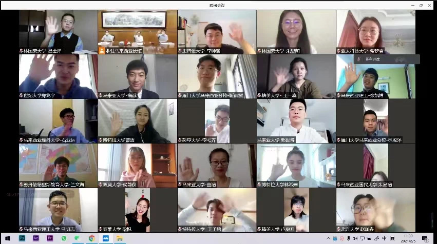 2月5日上午,中国驻马来西亚大使馆以视频方式与在马中国留学生代表进行线上交流,共有来自全马20多所高校的30余名留学生代表参加视频交流会。中国驻马来西亚大使欧阳玉靖向全体中国留学生致以春节的问候,详细了解同学们在马学习、生活状况,与大家分享个人经历、感受,并给予同学们诸多指导性建议。