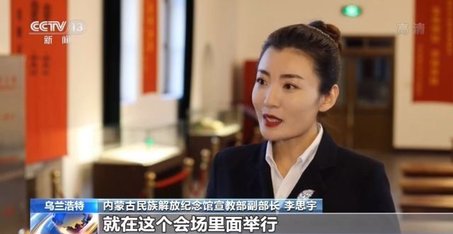 内蒙古民族解放纪念馆宣教部副部长 李思宇:1947年4月23日至5月2日,内蒙古人民代表会议就在这个会场里面举行,我们现在看到的这个会场就是我们根据历史的原样尽最大努力保留下来的。
