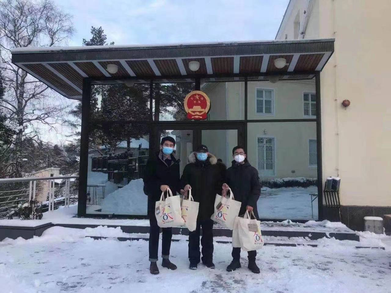 △中国驻芬兰使馆向在芬留学生和侨胞发送“春节包”