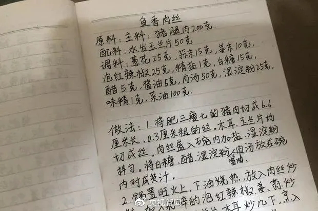 还手写了将近十页的菜单菜谱