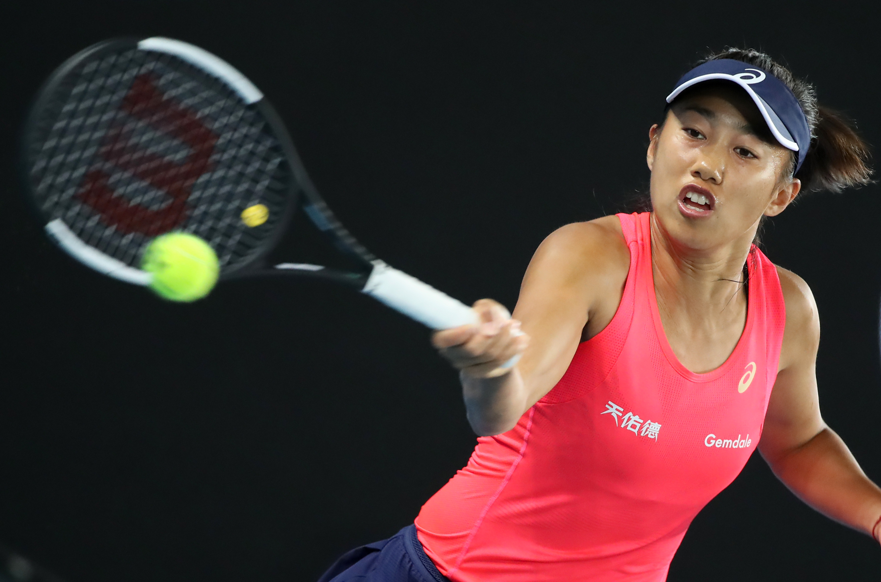 2020年1月24日,张帅在比赛中回球。当日,在澳大利亚网球公开赛女子单打第三轮比赛中,中国选手张帅以0比2不敌美国选手克宁,无缘下一轮。新华社记者白雪飞摄