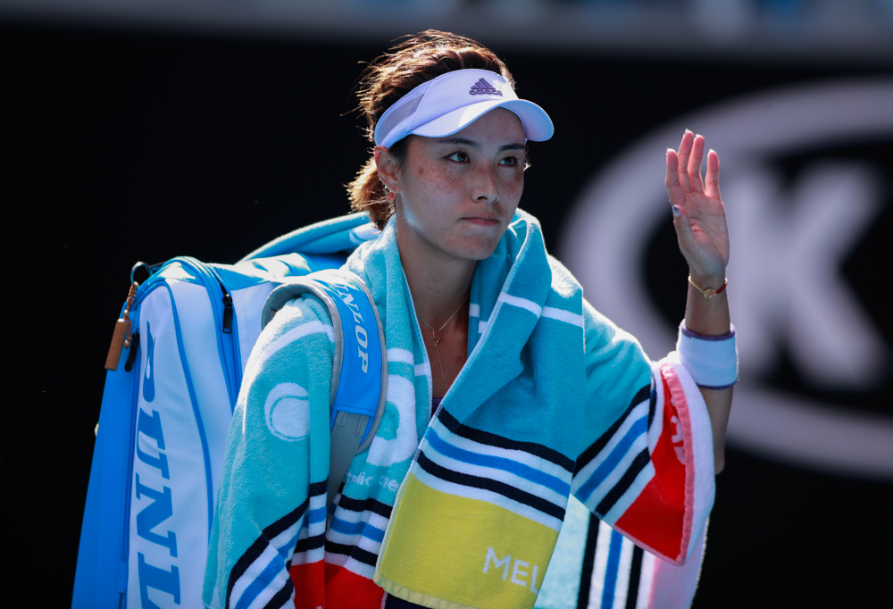 2020年1月26日,王蔷在比赛后向观众致意。当日,在澳大利亚网球公开赛女子单打第四轮比赛中,中国选手王蔷以0比2不敌突尼斯选手贾贝乌尔,无缘下一轮。新华社记者王婧嫱摄