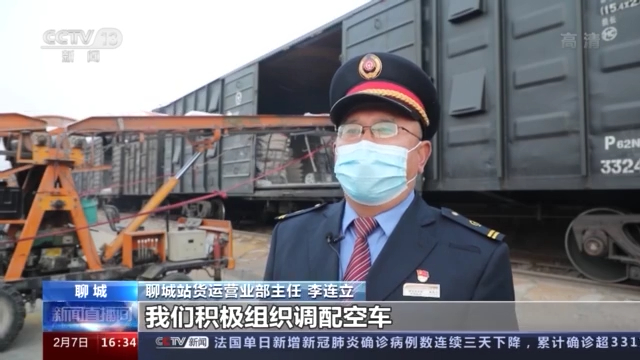 聊城站货运营业部主任 李连立:我们积极组织调配空车,增加装车人力,严格落实防疫措施,全力确保这批物资尽快挂运。