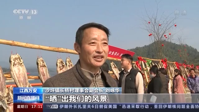 在江西万安长桥村,每年春节前,村民们都要集中制作一些腊肉、香肠等,并在空阔的场地上晾晒,对于长桥村的村民们来说,这些自家制作的腊肉香肠一挂出来,春节的脚步就越来越近了,年味也越来越浓了。