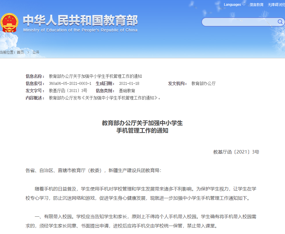 近日,教育部出台新规:中小学生原则上不能将手机带入校园。各地大多数中小学都已对手机进校园有了一定的限制性规定。