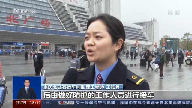 重庆北站客运车间助理工程师 王皓月:将病人症状信息依次告知上级疫情防控部门、疾控部门,后由做好防护的工作人员进行接车,与列车交接过程中、做好与其他旅客的隔离工作。