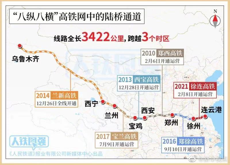 记者7日从中国国家铁路集团有限公司获悉,徐州至连云港高速铁路(徐连高铁)将于2月8日开通运营,徐州至连云港一小时直达。至此,我国“八纵八横”高速铁路网最长横向通道——连云港至乌鲁木齐的高速铁路全线贯通,将为新亚欧大陆桥经济走廊发展提供有力支撑。详情>>>