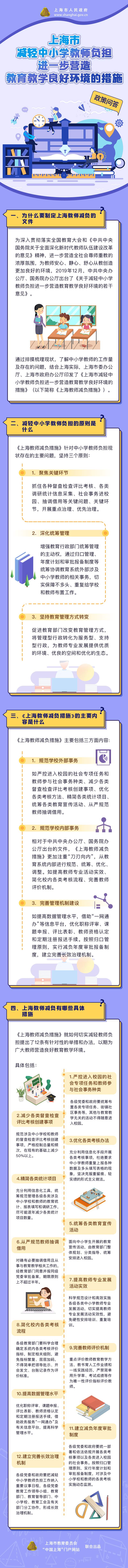 据介绍,《上海教师减负措施》将在上海全面实施,旨在切实减少对中小学校和教师不必要的干扰,进一步营造全社会尊师重教的浓厚氛围,为教师安心、静心、舒心从教创造更加良好的环境。