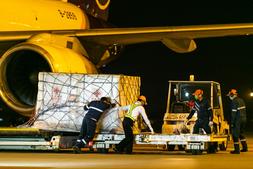 新华社万象2月8日电(记者章建华)中国政府援助老挝的新冠疫苗8日凌晨由中国圆通速递货运包机运抵老挝首都万象,老挝卫生部长本贡和中国驻老挝大使姜再冬到机场迎接。