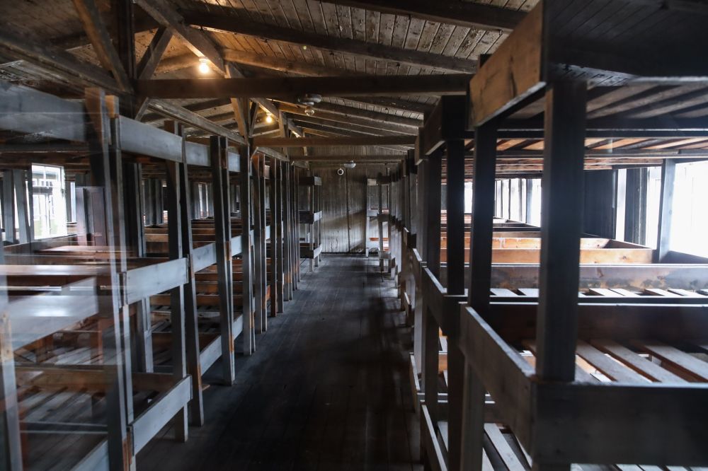 2020年8月27日在德国柏林以北小城奥拉宁堡拍摄的萨克森豪森集中营内一间当年遭关押人员的卧室。(新华社记者单宇琦摄)