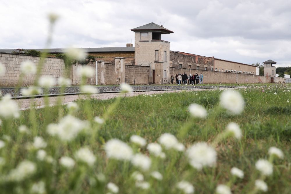 2020年8月27日在德国柏林以北小城奥拉宁堡拍摄的萨克森豪森集中营和一些参观者。(新华社记者单宇琦摄)