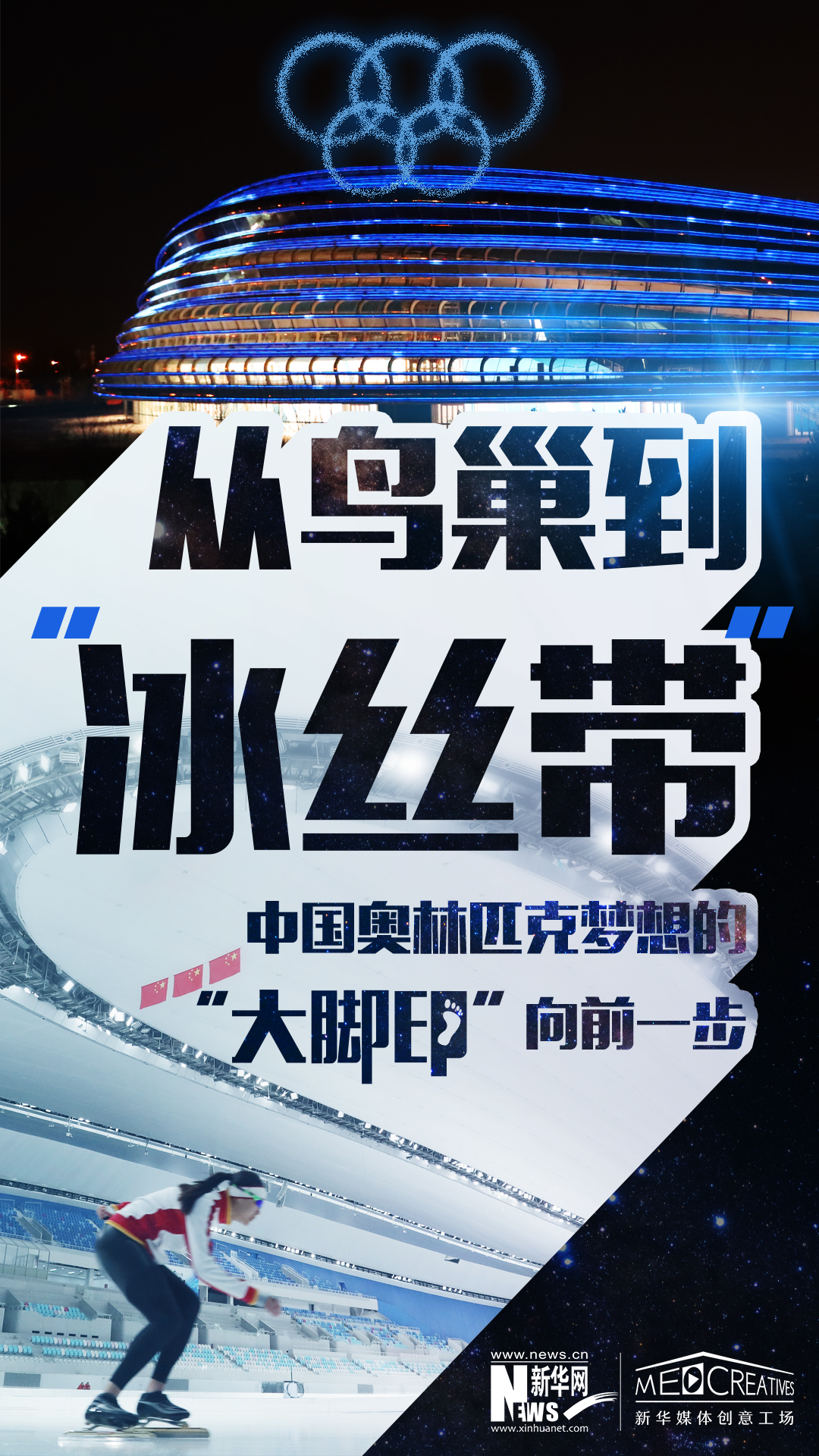 丝带飞扬,连通世界。以“冰丝带”为代表的北京冬奥会竞赛场馆群蓄势待发,期待着与来自全世界的宾朋共享奥林匹克荣光。在北京冬奥会之后,这些场馆将作为奥运遗产承载起人民群众对美好生活新的向往。从夏奥会到冬奥会,从“鸟巢”“水立方”到“冰丝带”,中国奥林匹克“大脚印”阔步向前。