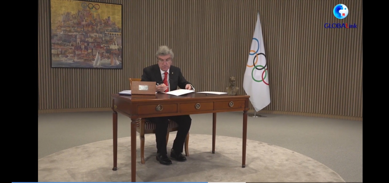 在北京2022年冬奥会迎来开幕倒计时一周年之际,在瑞士洛桑奥林匹克之家,国际奥委会主席巴赫在奥林匹克运动创始人皮埃尔·德·顾拜旦的办公桌上签署邀请函,邀请各国家(地区)奥委会及各位运动员参加北京冬奥会。