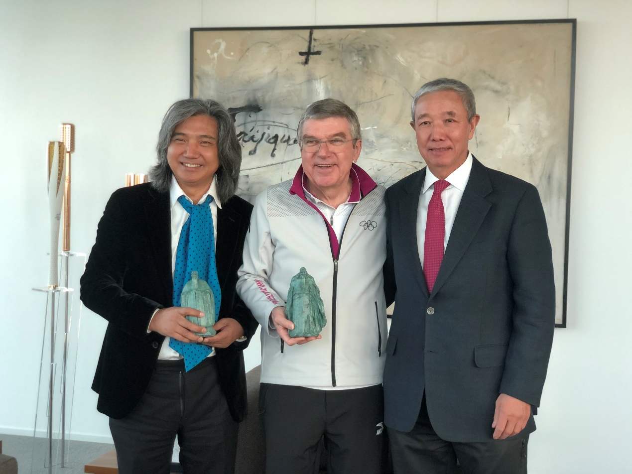 从左至右:中国美术馆馆长吴为山、国际奥委会主席巴赫、国际奥委会副主席于再清