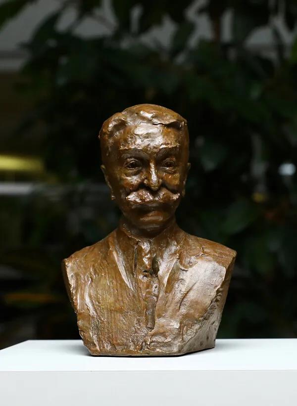 这尊雕像正是由“为奥运喝彩”组委会向国际奥委会赠送的顾拜旦铜像。2017年,在纪念顾拜旦逝世80周年之际,“为奥运喝彩”组委会受巴赫邀请为顾拜旦铸像。