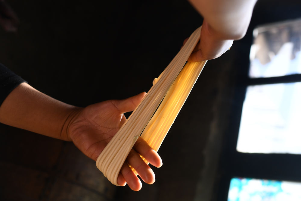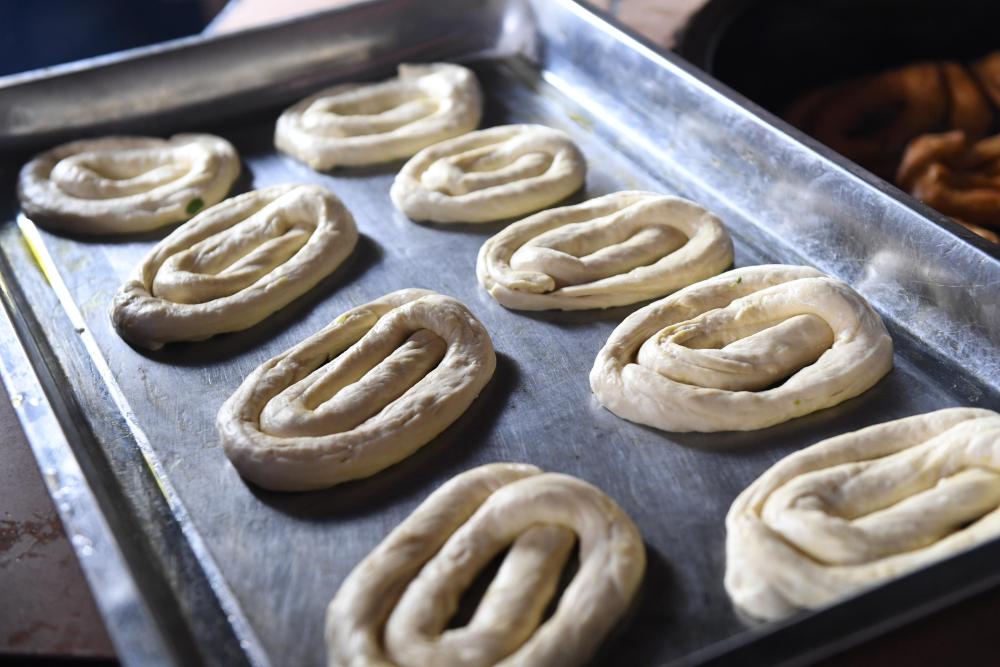 ↑这是2月5日拍摄的由发面制作等待下锅的盘馓。新华社记者 张曼怡 摄