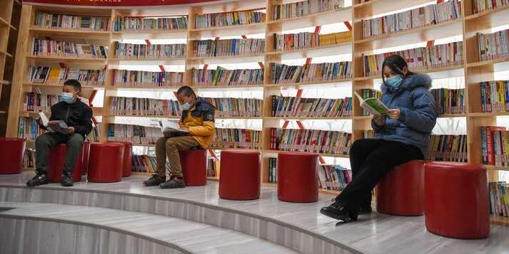 寒假期间,学生来到“石榴籽”书屋阅读。(新华社记者丁磊摄)