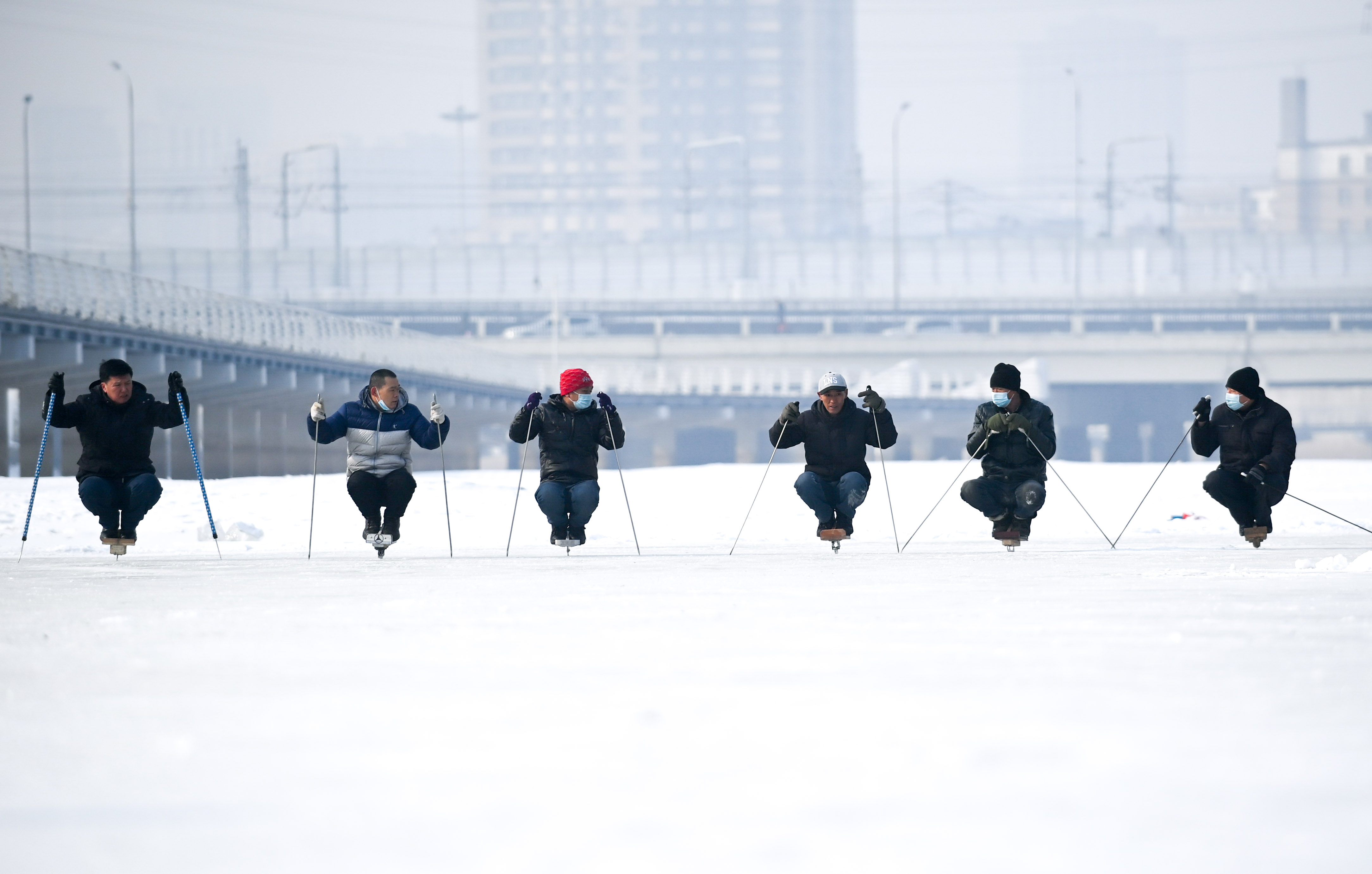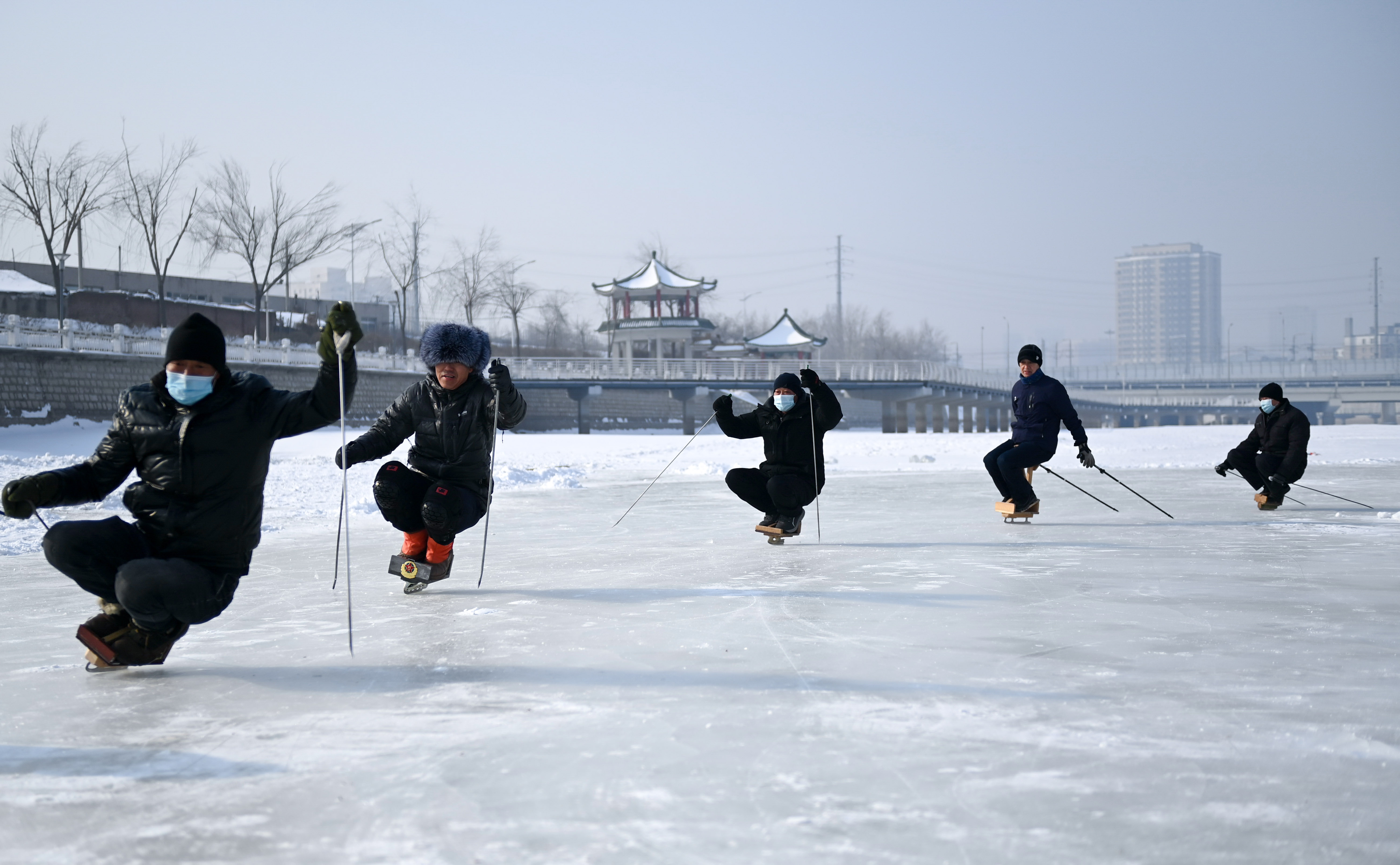 新华社长春2月8日电(记者李典、贾晓通、颜麟蕴)立春之后,天气回暖,但北国春城长春市河面依旧冰冻,在东大桥附近的伊通河冰面上,有一群“老男孩”通过参与冰雪运动喜迎新春佳节。蹲上冰车、保持平衡、双钎撑地、滑行出发……每天上午,在长春市,一群快乐滑行的“老男孩”蹲在一个由几块木板和单个冰刀组成的特殊冰车上,依靠手中的两根钎子保持平衡,向前滑行。