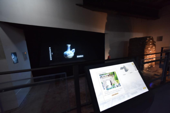 在参观栈道上,还设置有多台的触控互动屏,让观众在参观遗址现场的过程中获取更多的历史文物信息。