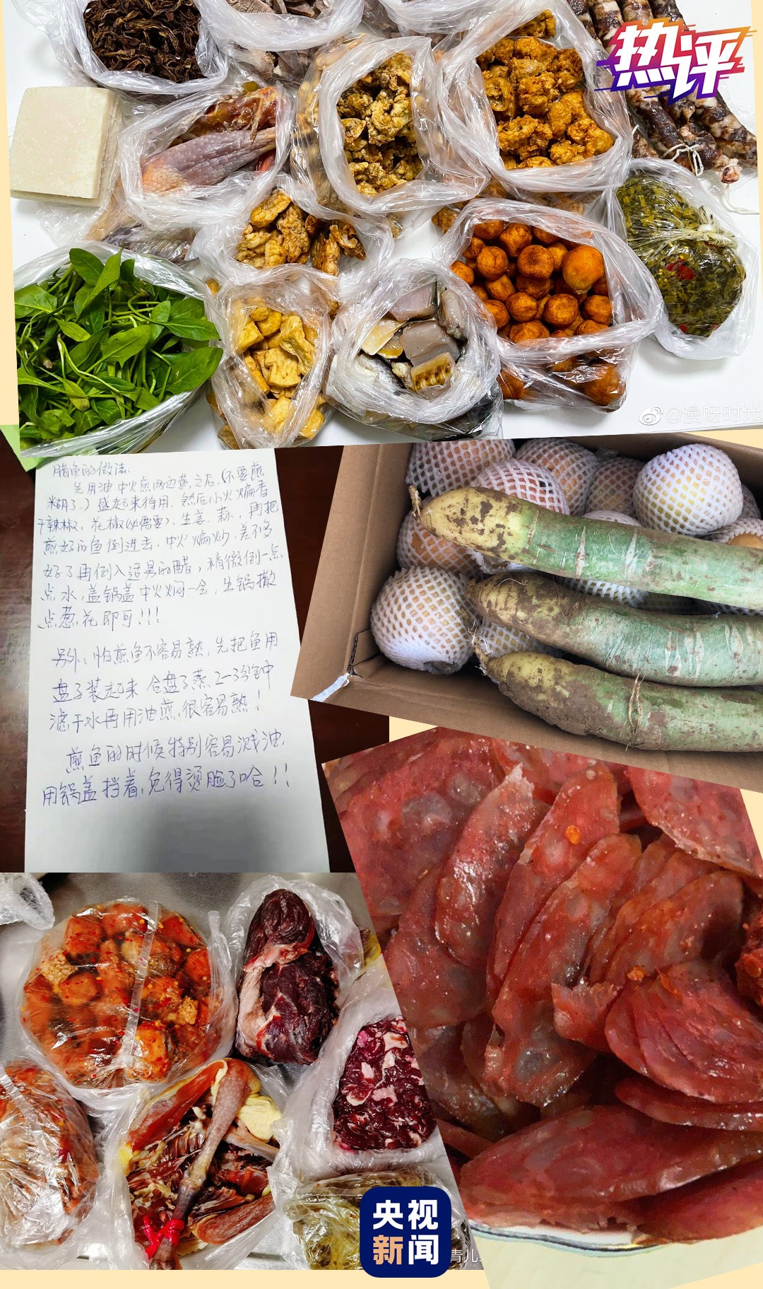 “收到60斤的大包裹,腊肉腊鱼一大堆,冰箱都塞不下”;“收到了妈妈寄的饺子,每种馅约200个”;“家里寄了羊肉、牛肉干、酱牛肉……”