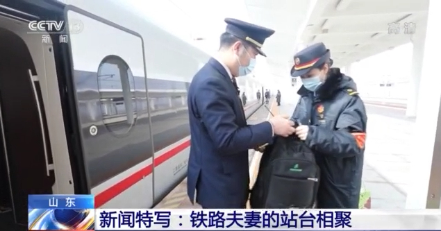 有这样一对铁路夫妻,丈夫杨延军是一名往返青岛至天津的高铁列车长,妻子滕晓菲是潍坊北站的一名客运值班员,因为班次的原因,他们每周只有一次在站台上团聚2分钟的见面时间,聚少离多的日子,站台成两人交集最多的地方。