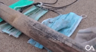 海洋动物误吞口罩导致死亡的事件并不在少数。除了企鹅尸体内发现完整口罩外,还有人在清洁迈阿密海滩时,看到口罩绳子缠绕在一只已经死亡的河豚身上。