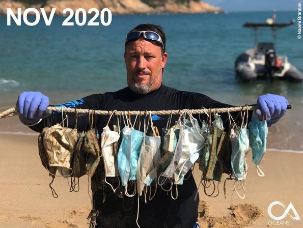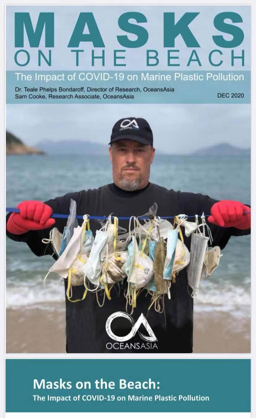 △OceansAsia组织于2020年底发布的报告“海滩上的面具”封面。