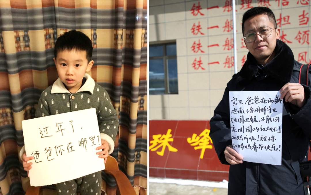 这是一张拼版照片,孩子名叫王跃民,已经快六岁了,一直没和爸爸一起过过年。今年他只能和妈妈、外公外婆在成都过年。爸爸王卿龙是西藏日喀则边境管理支队萨嘎边境管理大队的教导员,他长年工作在海拔4600米以上的边境一线,今年春节他主动把回家过年的机会让给了其他战友,自己又一次选择坚守岗位,在高寒缺氧的萨嘎县与战友们一起守卫边关! 邓彬 摄