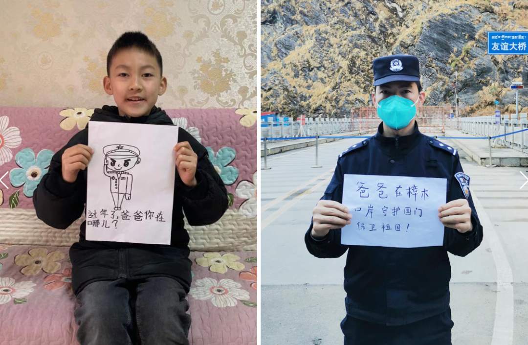 2021年的春节,很多孩子都满心期待爸爸能陪他们过年,可是由于戍边工作任务重,休假比例有限等一系列原因,只有20%的民警可以回家休假,大多数爸爸都坚守岗位、守护边关。为了让孩子们得到“爸爸春节去哪儿了”这个答案,西藏出入境边防检查总站政治处专门策划了孩子和爸爸隔空喊话的主题,用一系列的拼版照片,表达孩子们对爸爸的思念,和爸爸们为了国家边境安全,只能牺牲小家坚守岗位的担当。祝愿守卫边关的“移民警察爸爸”身体都平安健康,在家的警娃们都能茁壮成长。